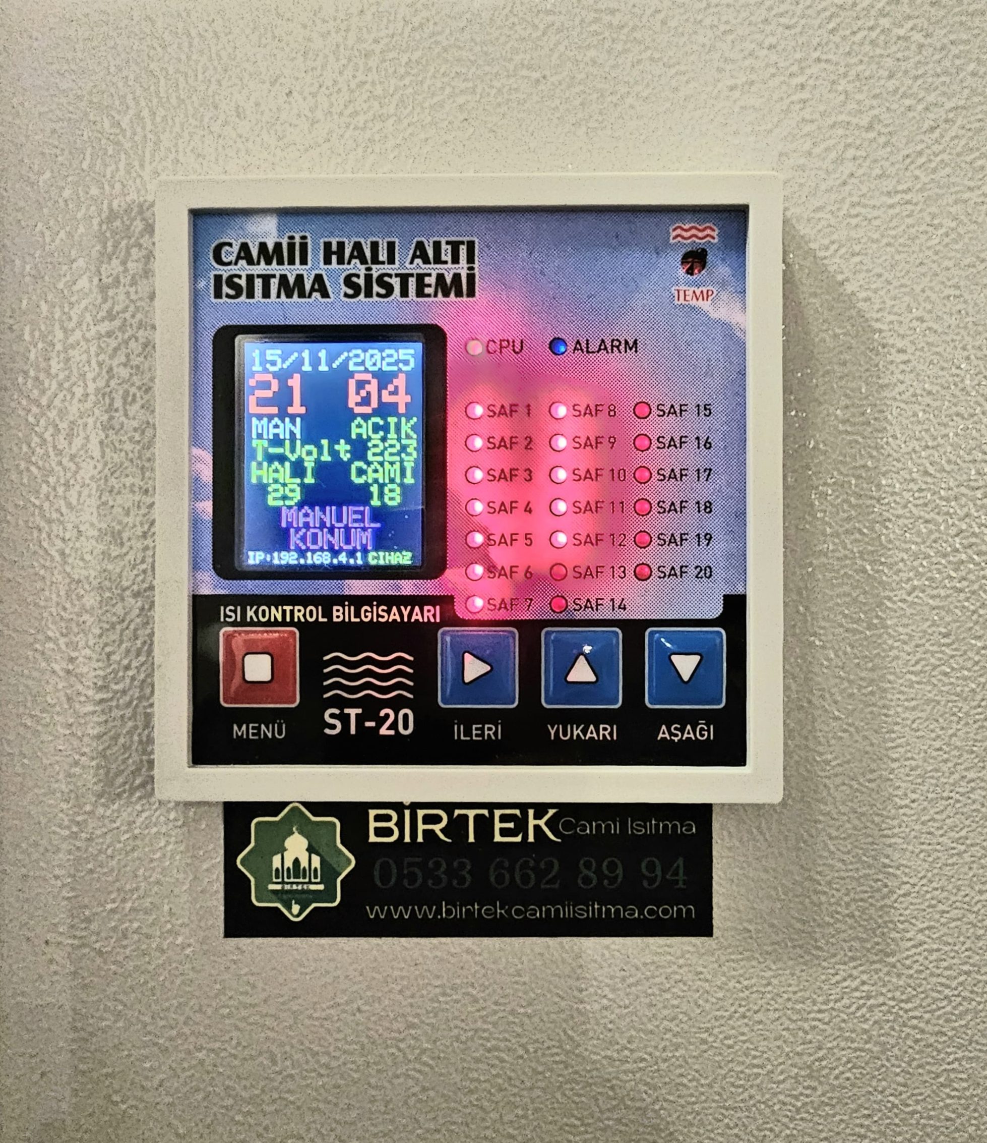 Birtek Cami Isıtma ekibi, kurulumu bitirdikten sonra cami görevlilerine (İmam, Müezzin veya Dernek Yöneticisi) sistemin kullanımı hakkında detaylı bir eğitim verir. Otomatik zamanlama ayarlarının nasıl yapılacağı, safların nasıl açılıp kapatılacağı ve tasarruf modlarının kullanımı uygulamalı olarak gösterilir. Sistem, kullanıcının tam hakimiyeti sağlandığında teslim edilir